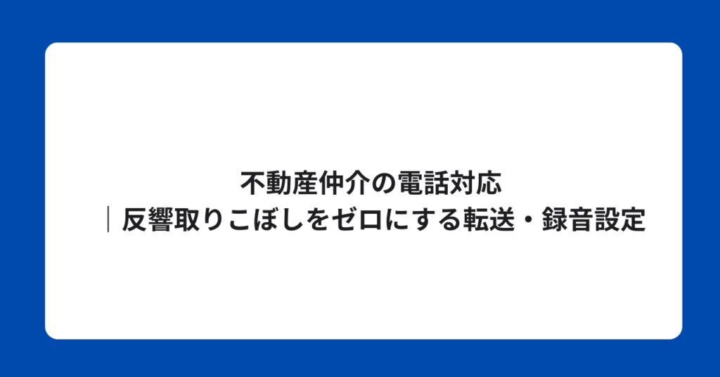 不動産仲介の電話対応|反響取りこぼしをゼロにする転送・録音設定 不動産仲介における反響電話(ポータルサイトからの問い合わせ電話)は、他社にも同時に問い合わせて... -