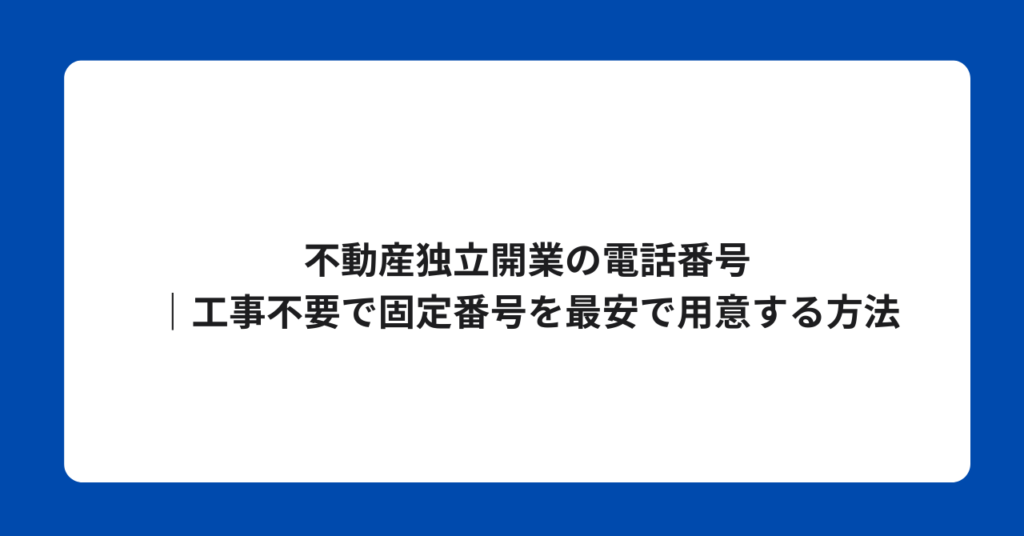 不動産独立開業の電話番号|工事不要で固定番号を最安で用意する方法
