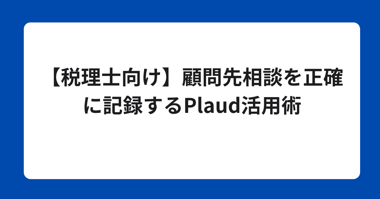 【税理士向け】顧問先相談を正確に記録するPlaud活用術
