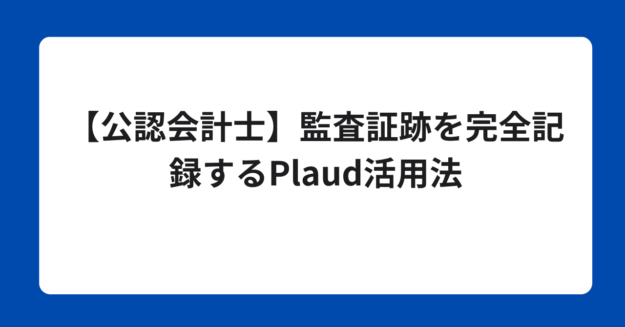 【公認会計士】監査証跡を完全記録するPlaud活用法