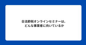「合法節税オンラインセミナー」という選択肢をどう位置づけるか