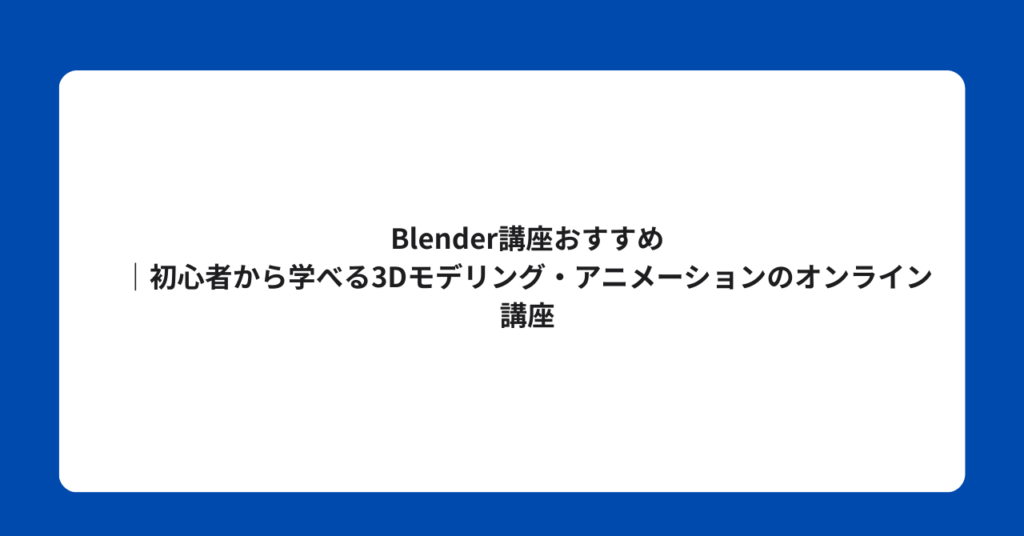 Blender講座おすすめ|初心者から学べる3Dモデリング・アニメーションのオンライン講座