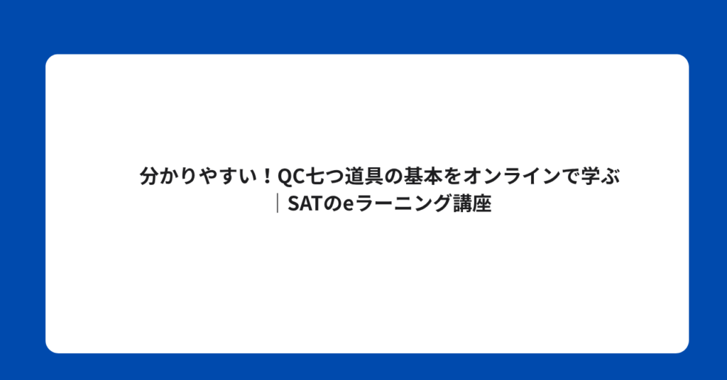 分かりやすい!QC七つ道具の基本をオンラインで学ぶ|SATのeラーニング講座