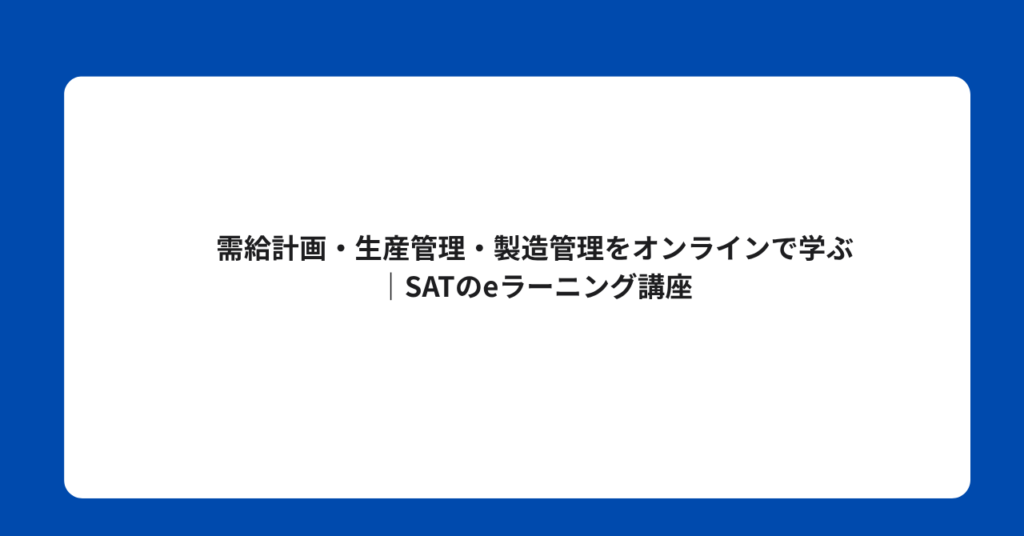 需給計画・生産管理・製造管理をオンラインで学ぶ|SATのeラーニング講座