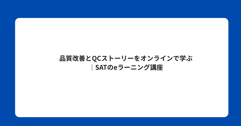 品質改善とQCストーリーをオンラインで学ぶ|SATのeラーニング講座