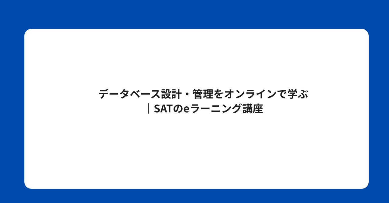 【eラーニング現場系・国家資格のSAT】SATでデータベース設計・管理を学ぶ