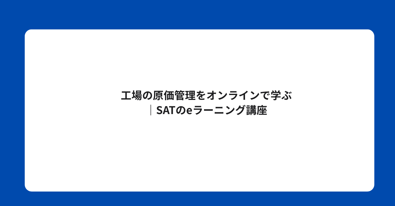 【eラーニング現場系・国家資格のSAT】SATで工場の原価管理を学ぶ