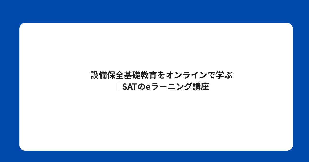 設備保全基礎教育をオンラインで学ぶ|SATのeラーニング講座